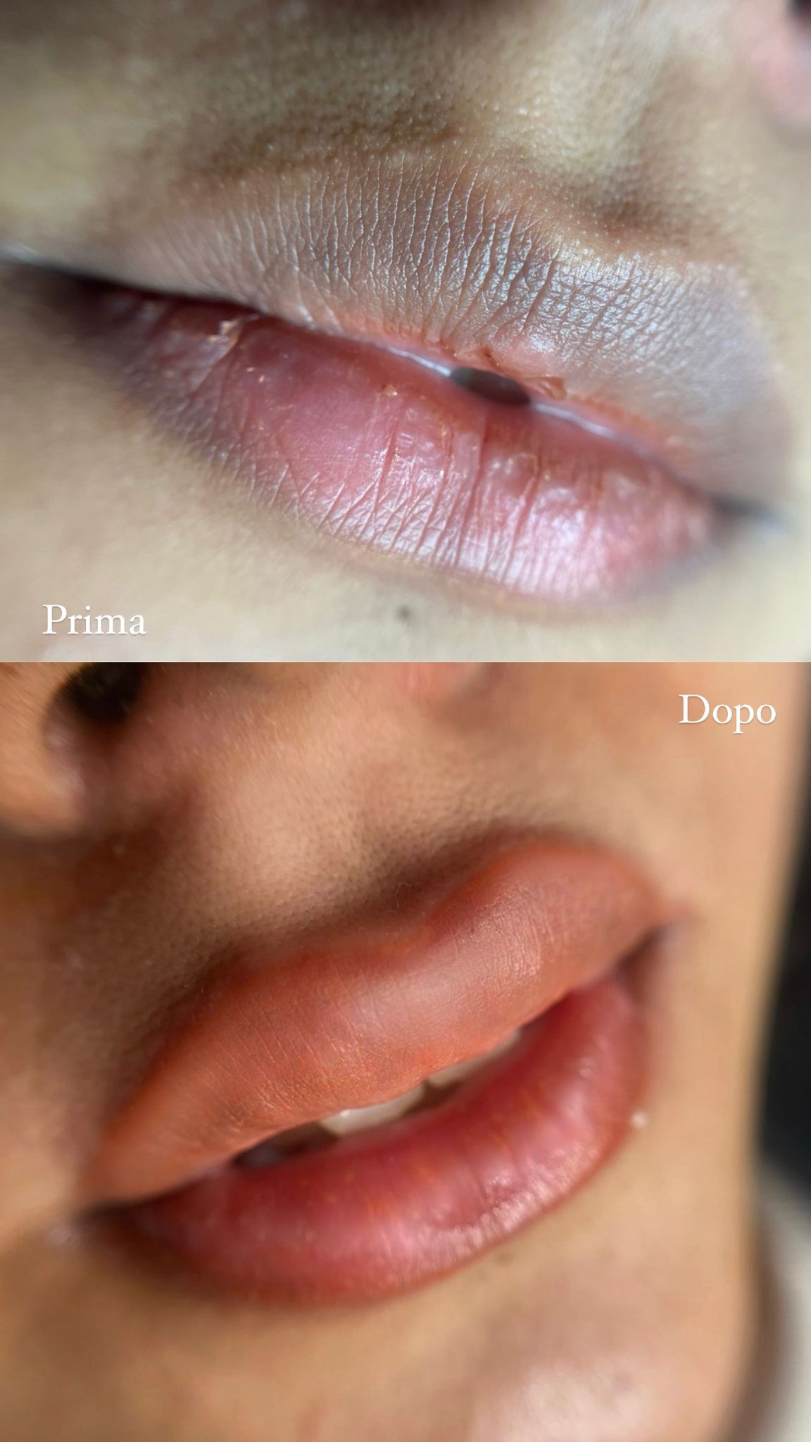 Questo trattamento su labbra consiste nel realizzare un contorno labbra delineato e sfumato verso l’interno della mucosa, in modo da donare colore e definizione alle labbra.